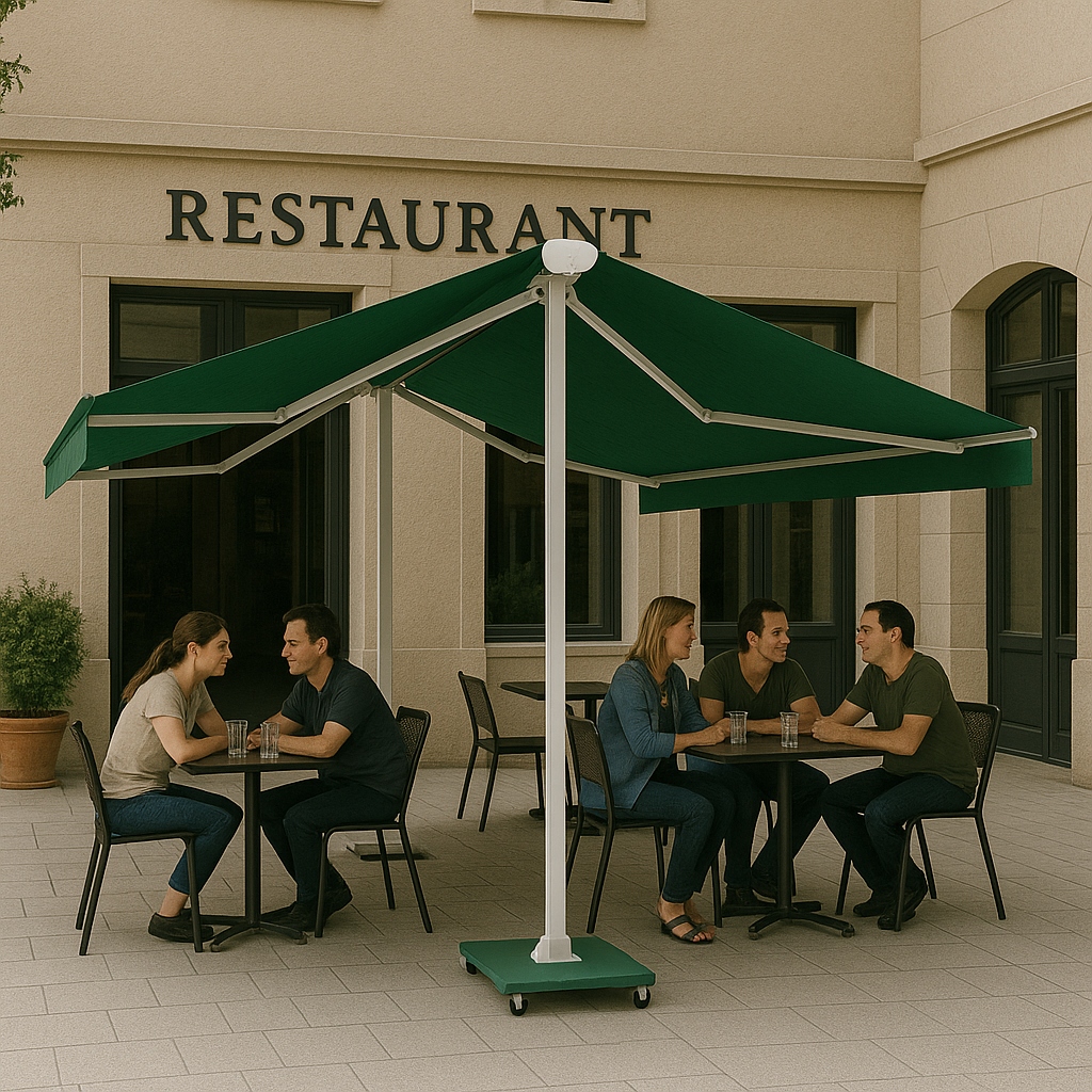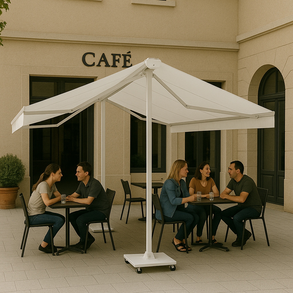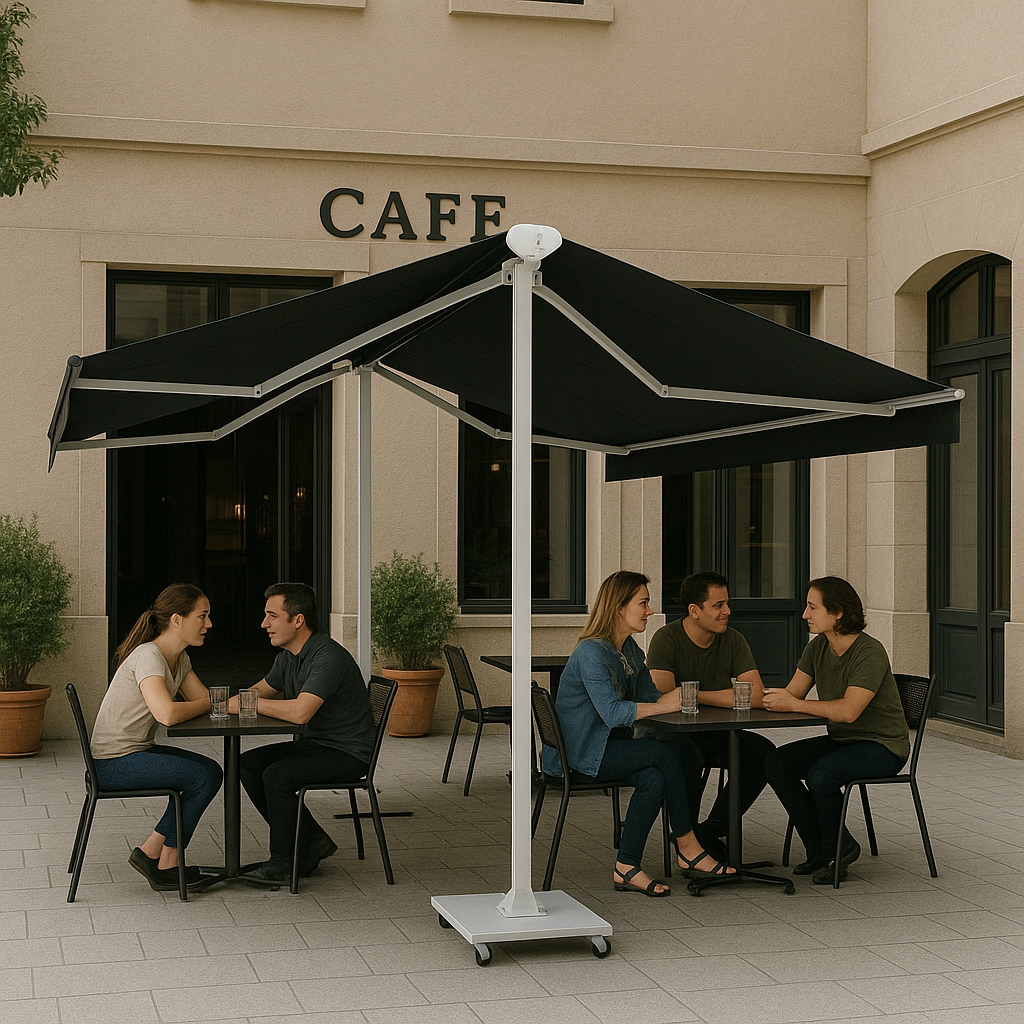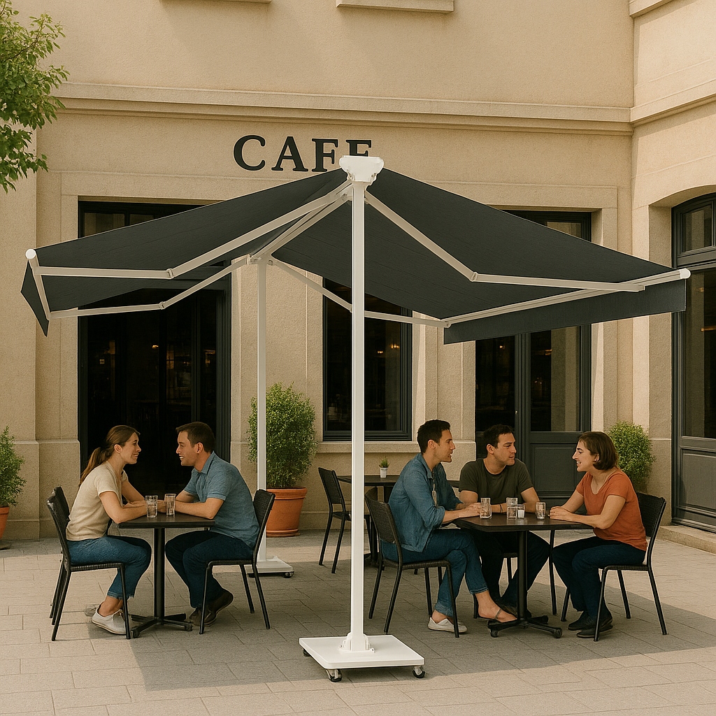 İki tarafa birden açılan yapısı sayesinde tek bir sistemle daha geniş bir alan gölgelendirilebilir. Bu özellik, özellikle masa düzeninin yoğun olduğu işletmelerde kullanım verimliliğini artırır.